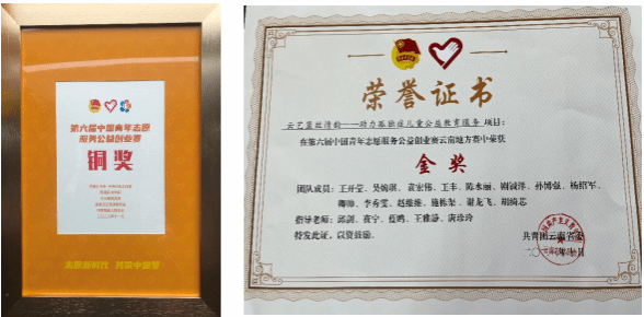 4、2023年获第六届中国志愿者创业大赛云南地方赛金奖、国赛铜奖;