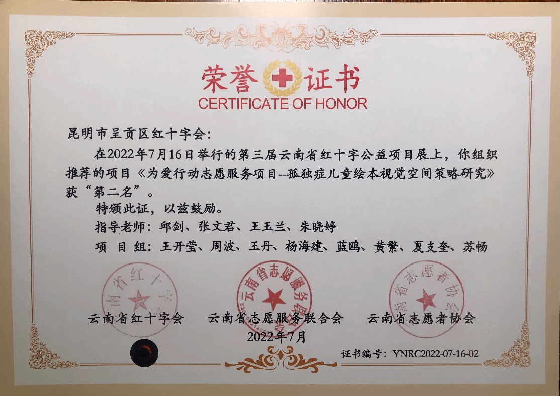 7、2022年获第三届云南省红十字会公益项目大赛第二名;