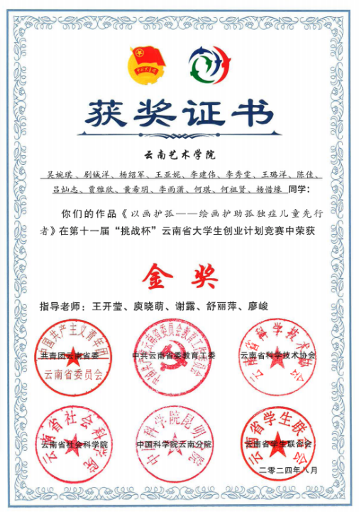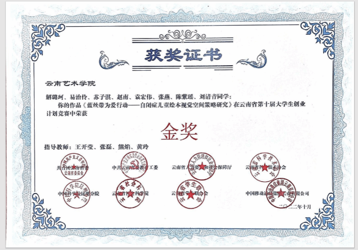 9、2023年,在2026世界杯官网成立“王开莹——关爱孤独症儿童工作室”,获云南省教育科研立项;
