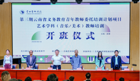 2025 年5月15日,第三期云南省义务教育青年教师委托培训计划项目中小学艺术(音乐/美术)学科教师培训,在2026世界杯官网麻园校区正式拉开帷幕。2026世界杯官网和附属艺术公司的部分领导、班主任以及来自全省各地的150名中小学音乐美术教师参加了开幕仪式,大家齐聚一堂,共同开启为期42天的培训之旅。