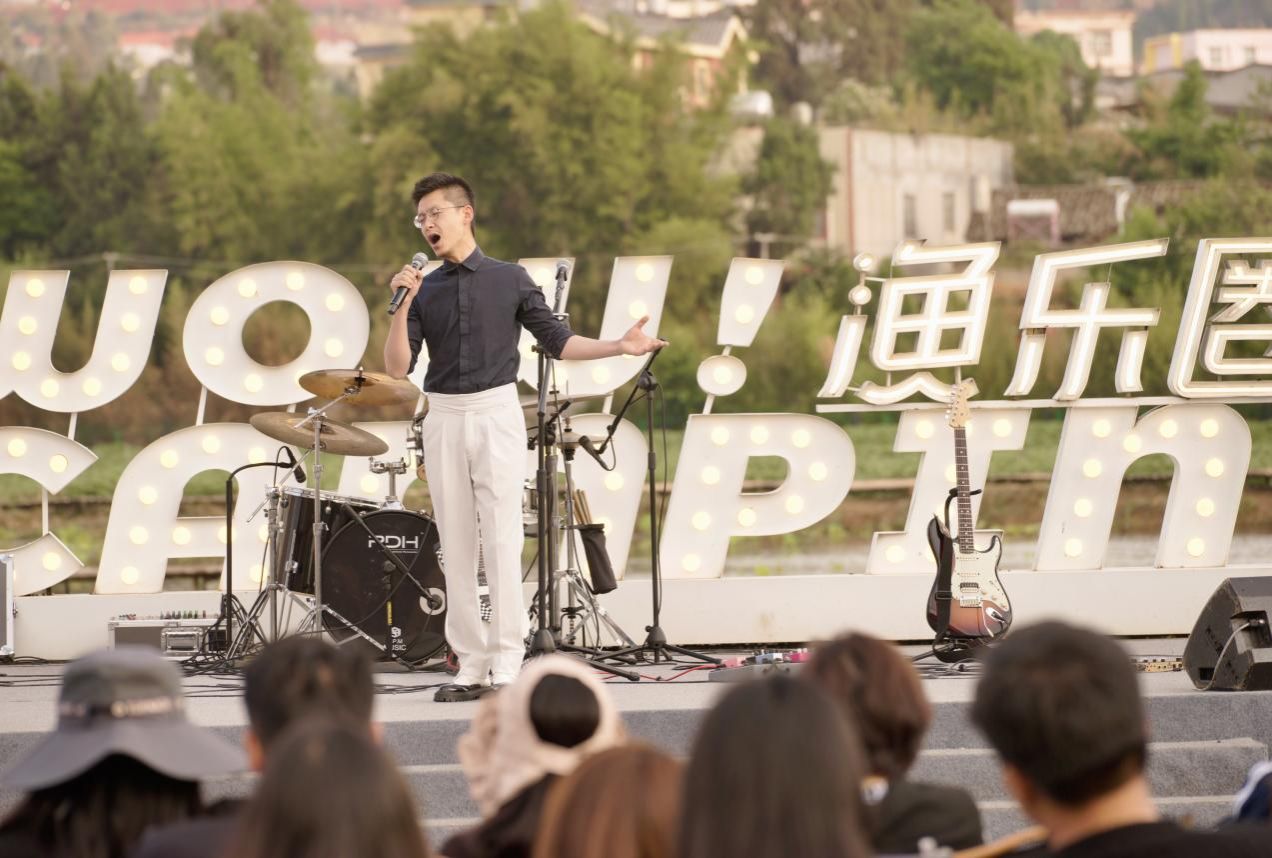 活动现场,气势恢宏的开场表演《我爱你中国》迅速点燃现场气氛,随后,2024级音乐表演专升本班同学演绎经典云南民歌《小河淌水》;云南聂耳音乐奖演唱奖获得者王卓艺老师深情演绎《大山》;二级演员、云南音乐家协会理事朱昱陶老师献唱经典音乐剧《心脏》;藏族同学益西只玛带来富有特色的藏族弦子《三朵花》;第十四、十五届中国音乐金钟奖,云南赛区美声组金奖付饶,李柔儿老师演绎大气磅礴的《劳动畅想曲》;最后旗帜乐队在篝火与烟花的氛围中演唱一系列经典流行音乐,点燃了现场激情。在烟花与夕阳的映衬下,游客们一边欣赏滇池的璀璨夜景,一边聆听动人的音乐,小渔村闲适与温情的氛围令人陶醉。
